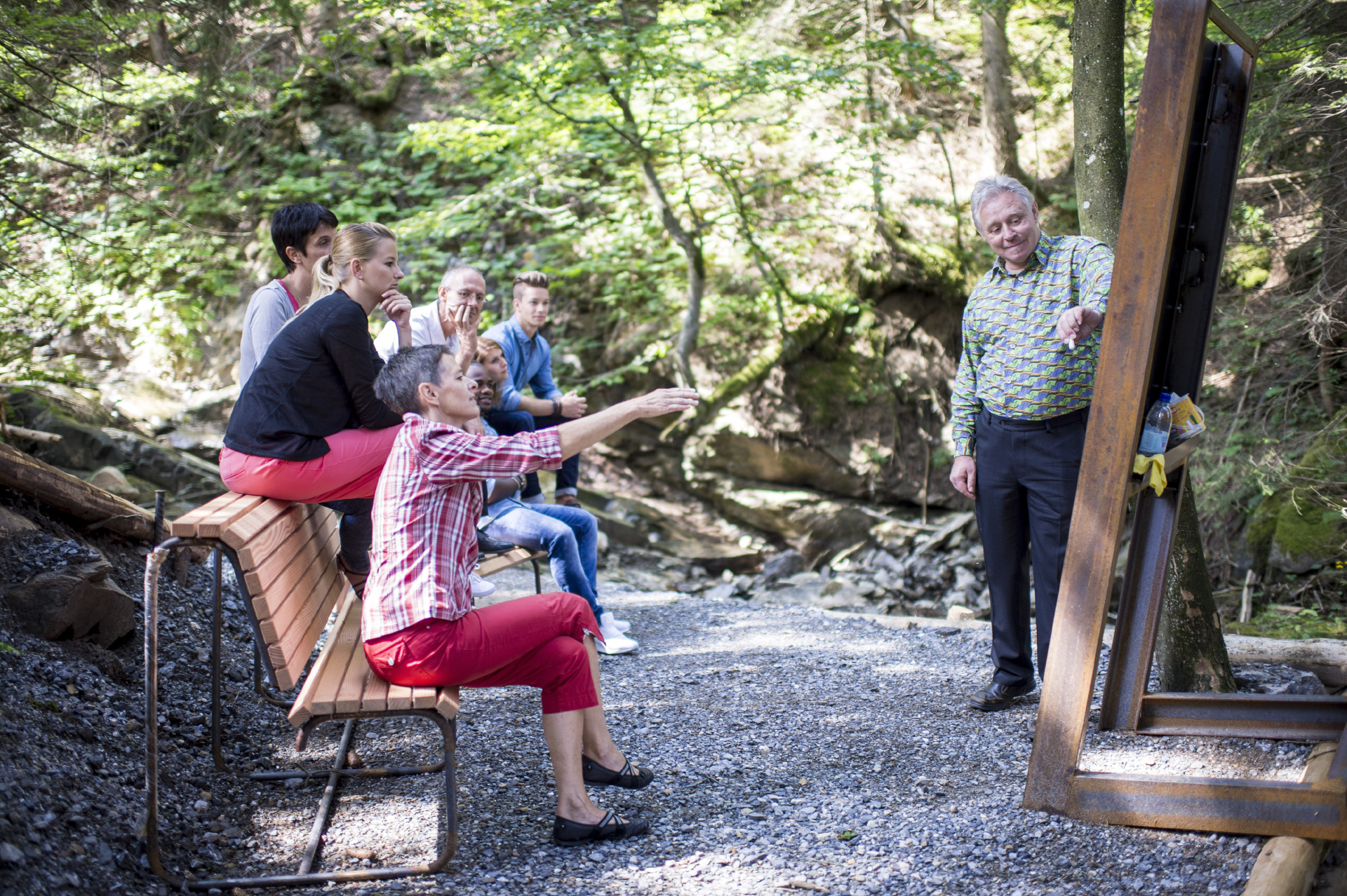 Die Teilnehmenden haben die Aufgabe, sich von der umliegenden Natur inspirieren zu lassen. Einfach den Moment geniessen und auf die Geräusche und Gerüche der Natur achten und auf sich wirken lassen. Manchmal ist weniger mehr. Ihre Gedanken und Wahrnehmungen können sie im mitgeführten Tagebuch festhalten.